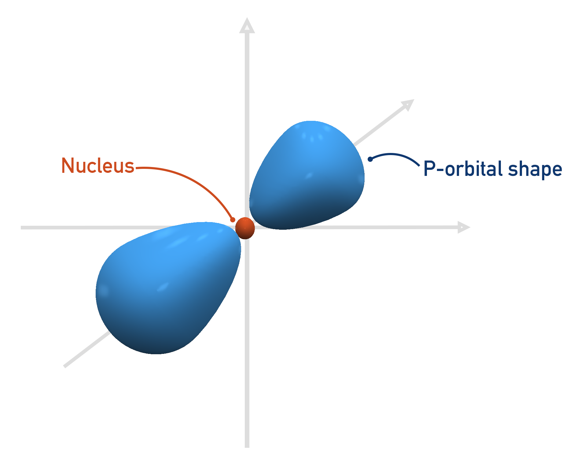 A bit extra: electrons move very fast continually, so we cannot ever say exactly where an electron will be at any one time. As soon as an electron is in one place, it moves to another. These orbital diagrams and shapes are probability densities. They show the area where an electron is most likely to be found at a given time. It is a bit like saying someone is at home. You can say that the person is within their house, but you have no real way to know where the person is exactly – all you can say is ‘you should find them somewhere in their house’. The orbital diagrams are basically the electrons' houses – they can be anywhere in the given areas.